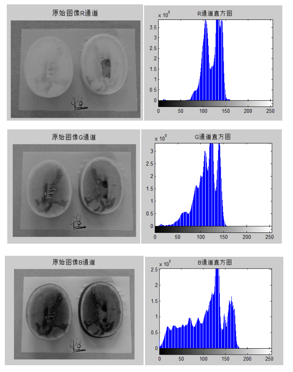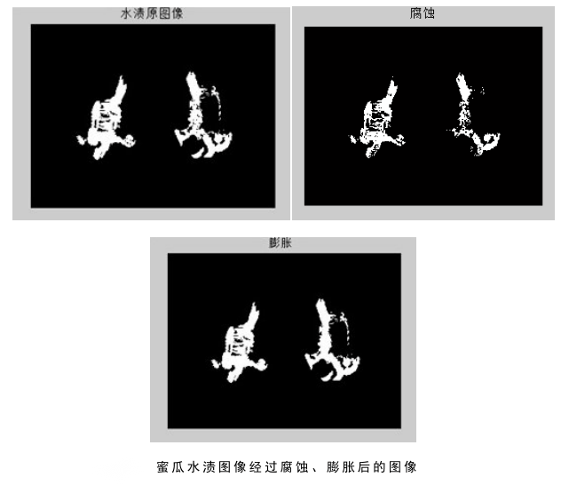 4.本研究通过对水渍图像直方图的显示观察研究、对比度拉伸、中值滤波等预处理过程,最后通过直方图阈值分割方法成功对蜜瓜水渍图像进行了提取。